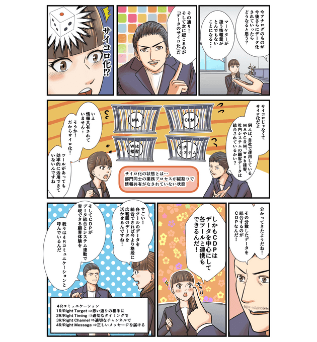 CDPをわかりやすくマンガで解説した資料です。CDPとは何なのか、実店舗・ECサイトなど異なる環境でバラバラになった顧客マスタを統合するSCV(シングルカスタマービュー)機能についても解説しています!