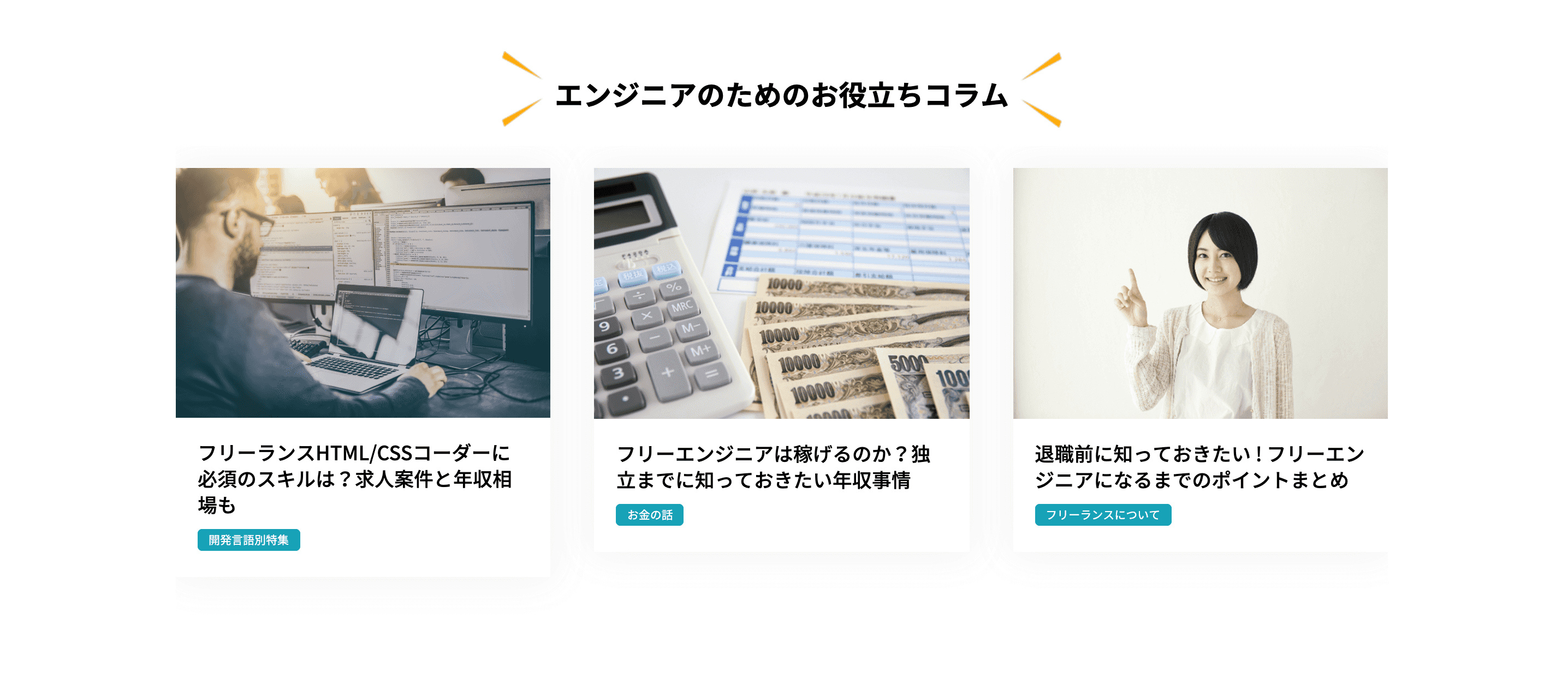 「FAworks」では、案件情報の他にも、フリーランスの方に役立つ知識などについてまとめたブログやコラム、コンサルタントの紹介など、様々なコンテンツを用意しています。